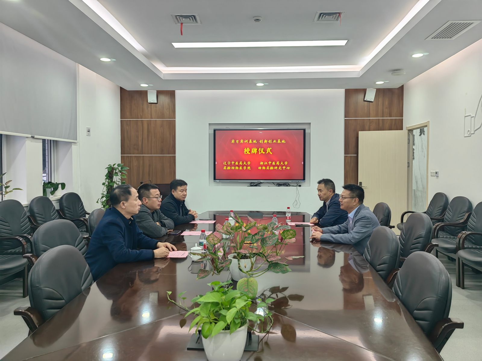 2025年10月22日下午,浙江中医药大学动物实验研究中心与辽宁中医药大学实验动物医学院合作共建的“实习实训基地、创新创业基地”授牌仪式在中心会议室顺利举行。辽宁中医药大学实验动物医学院院长赵相轩、副院长吴运谱、督导王春田,动物实验研究中心主任王德军等共同出席本次仪式。
